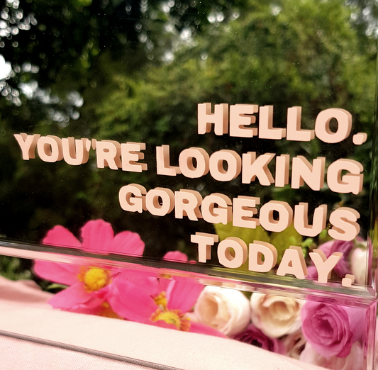 Hello you're looking gorgeous today mirror self affirmation vinyl decal